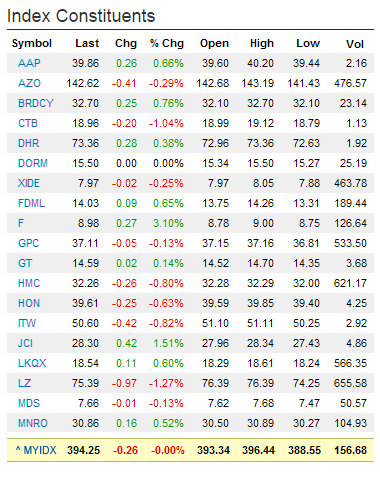In addition to intraday and historical charting of your unique Custom Index, we also offer comparative charting to easily compare your Custom Index to indicators and indexes like the Dow Jones, NASDAQ, S&P 500, and so on.