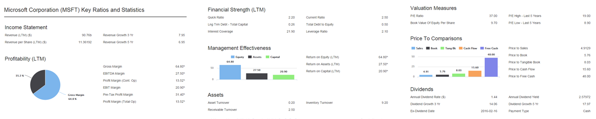 Available in an array of fully customizable web displays and content feeds, our Key Ratios and Statistics can offer your users and site visitors invaluable insights into the condition of any business, including whether it is having trouble paying its bills and debts, or collecting from customers, whether its stock is overpriced, whether it's profitable and if its revenue is growing, whether Management is effectively using assets and capital, and much more.