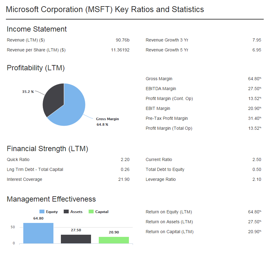QuoteMedia provides Key Ratios and Statistics for virtually every company. Our attractive and intuitive displays give your users and site visitors an instant snap shot of the current financial position of a company, and lets them analyze its performance in relation to other companies, the industry or the market.