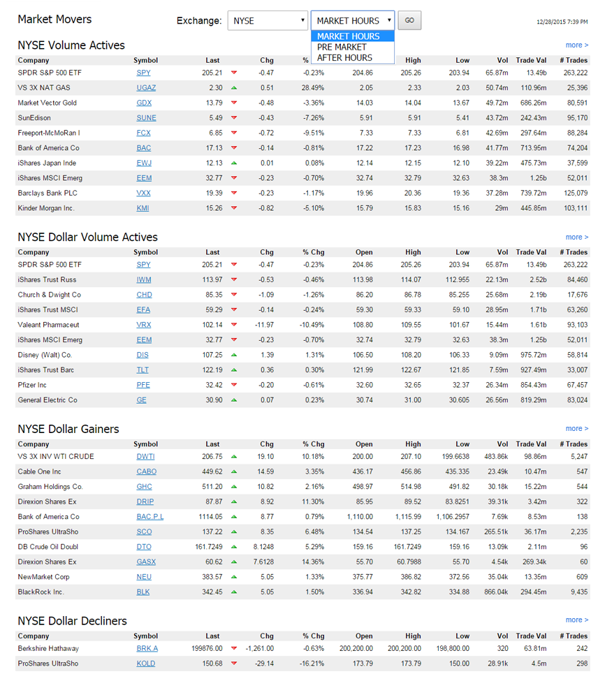 Market Movers data includes: